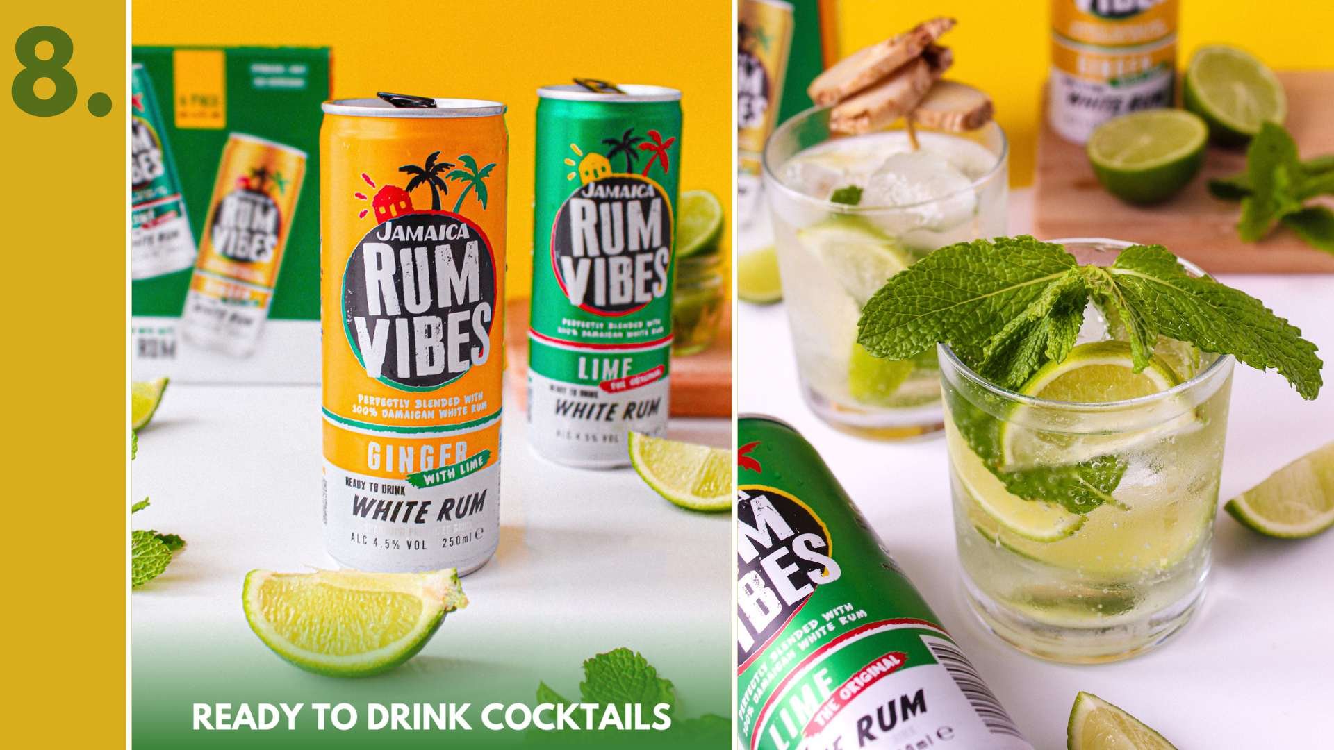 Jamaica Rum Vibes was founded by Jamaican-born Tamoy Carter and uses a unique blend of the island’s overproof white rum from the best distilleries to create a range of sparkling ready-to-drink cocktails.